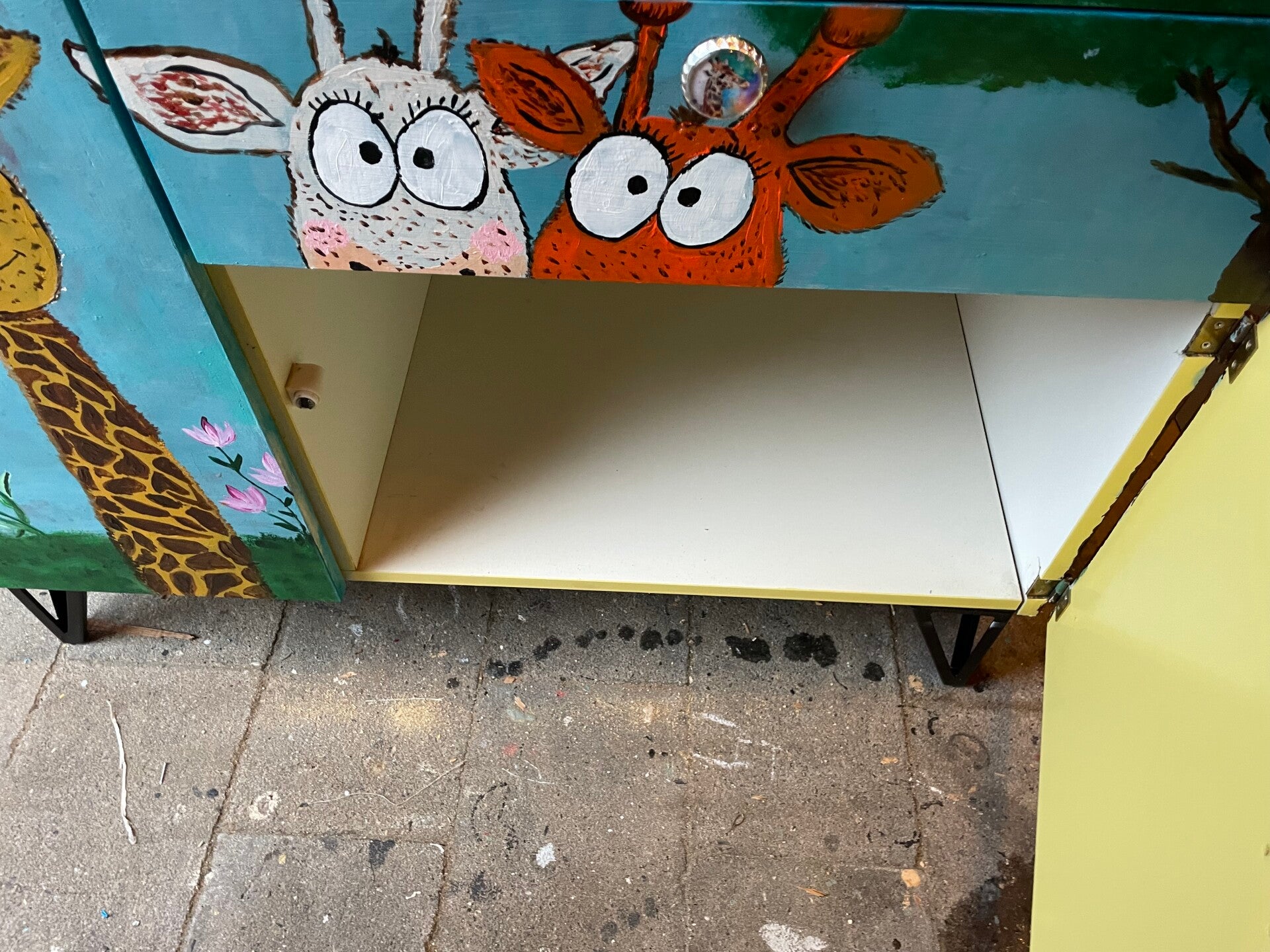 🌿 Unieke handbeschilderde kast – vrolijke giraffen 🦒🦋