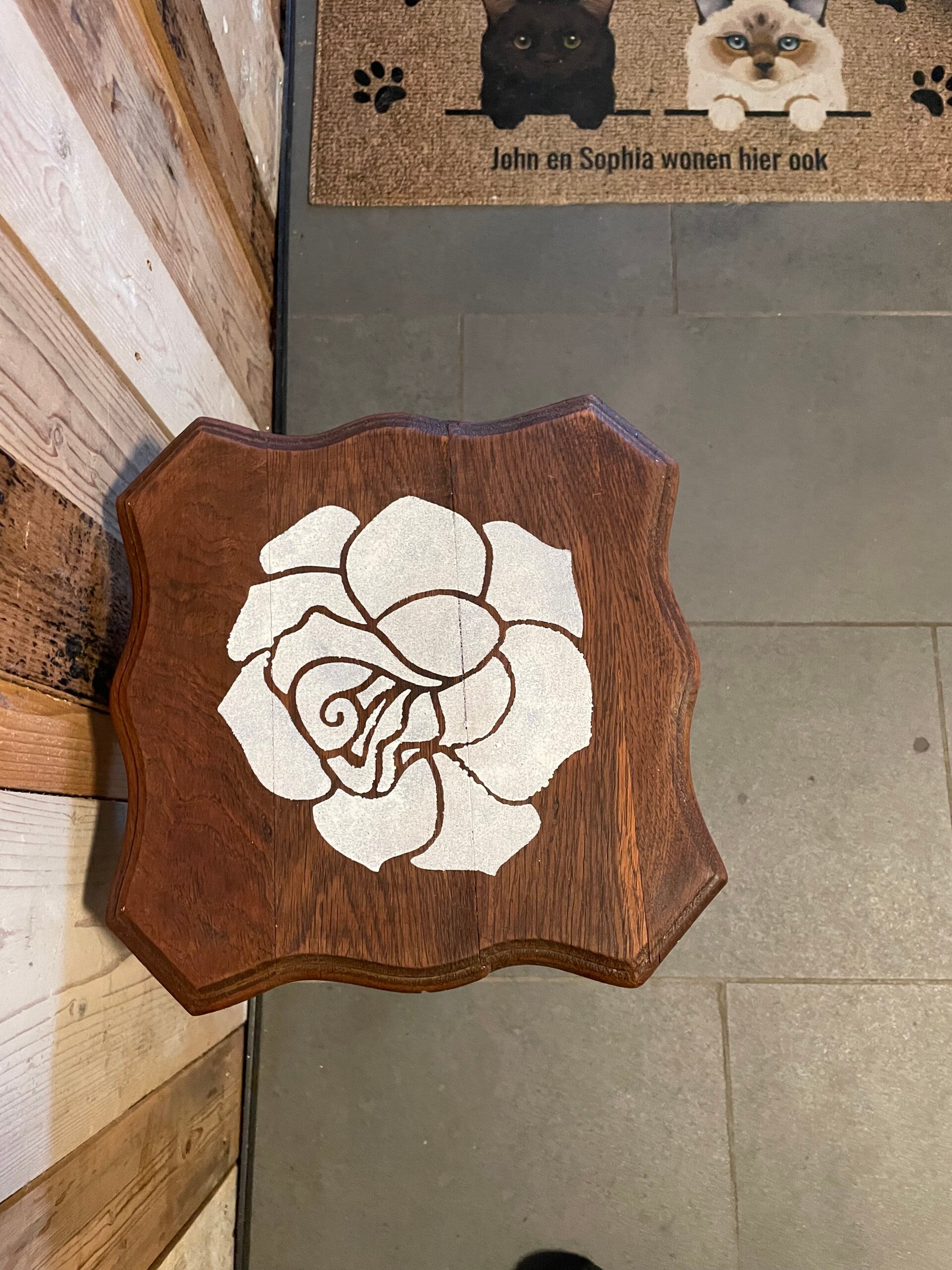 • Mooi afgewerkt houten blad met roosmotief