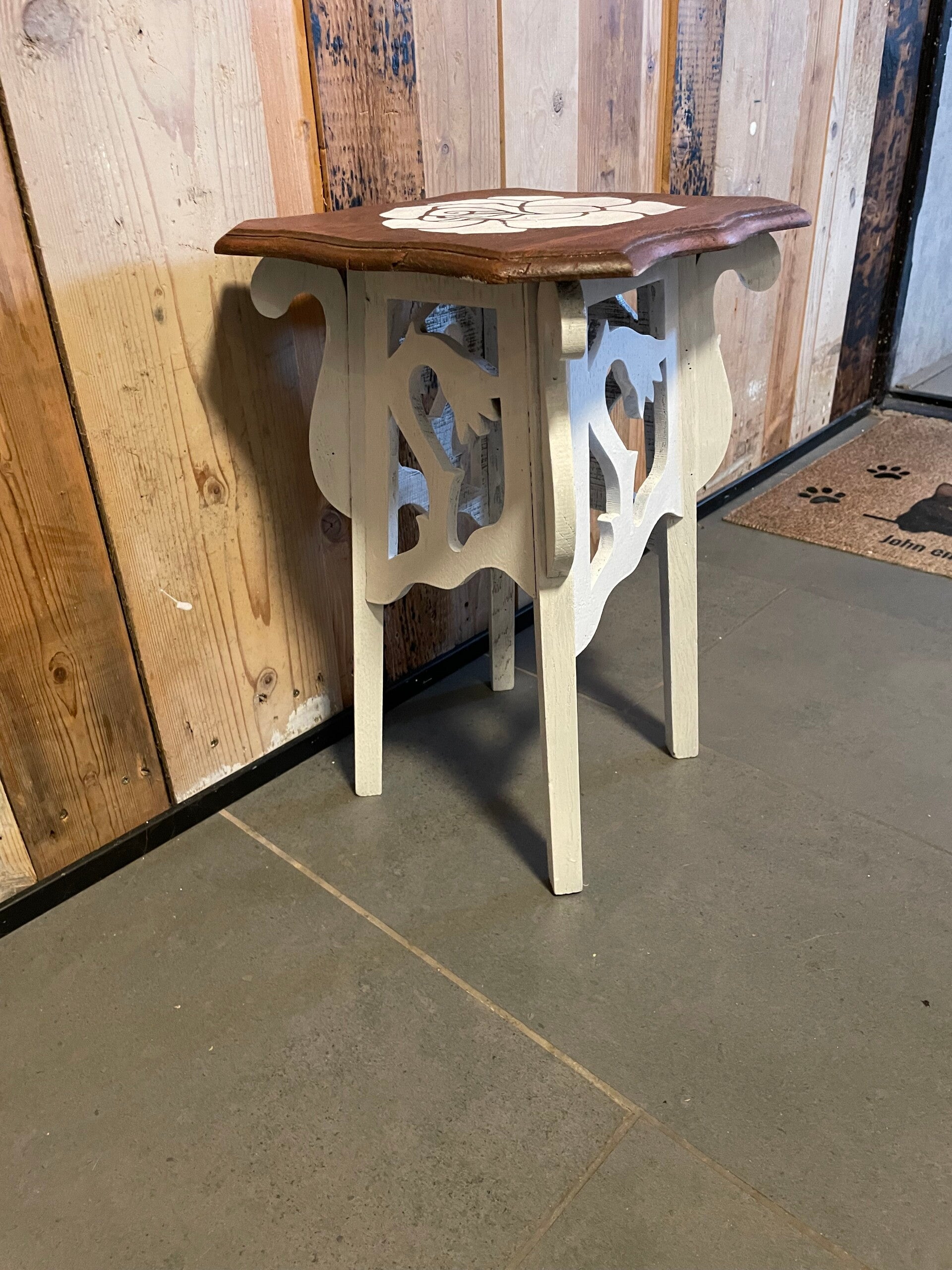 Uniek en stijlvol houten plantentafeltje te koop! Dit charmante tafeltje is een echte blikvanger in elk interieur – van landelijk tot modern.